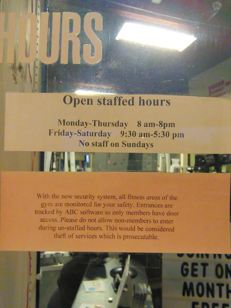 Two stories full of equipment, exercise rooms, lockerrooms, 4 tanning beds and a sauna! Perfect gym for a small town!