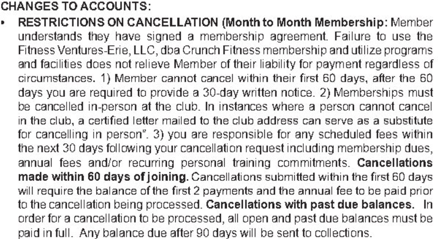 It is close to impossible to cancel your membership with crunch. They will screw you over & try to pressure you into paying more than you want.
