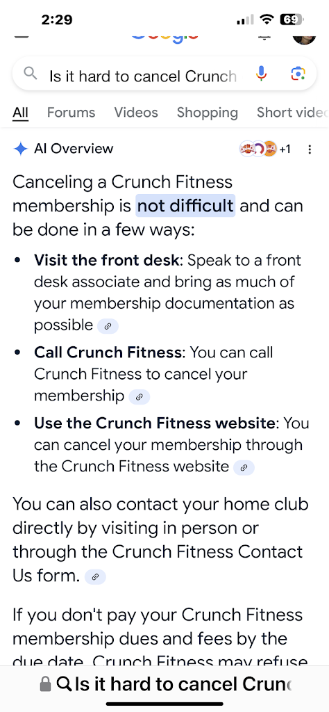 This isn’t just unfair — it’s unsafe. They discarded a veteran who gave his clients real care, and they’re leaving members like me with bills for services we cannot safely use. Crunch does not value its trainers, its clients, or basic accountability.