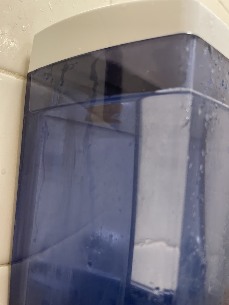 The shower walls and shower curtain are orange and slimy with soap scum. There is constant debris on the floor of the showers and band aides/trash that remain in the same place for days and weeks. It is disgusting and obvious the shower walls do not get scrubbed regularly. I doubt the showers are even scrubbed once a month when they should be cleaned and scrubbed almost daily. It is also very obvious that the bathrooms are not scrubbed either. The toilets and urinals are becoming more and more disgusting and the paper towel and toilet paper dispensers are often empty.
