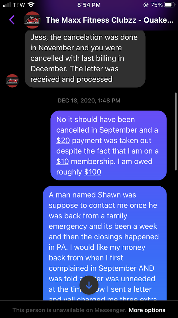 I tried to fight for a refund from September, but settled for Nov/Dec since the written notice was needed and provided by then. Awful awful AWFUL service. Never refunded to this day for the money they took from me (not that it matters anymore). RUDE over Facebook and owner refuses to take phone calls (I recall the manager, Sean, at the time stating "he got out of customer service and does not take calls".
