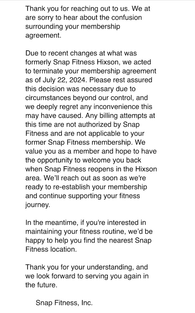Atmosphere and gym equipment are good. Joe is always kind! Employees sometimes speak and sometimes don’t when you come in. I also had an issue with getting charged after I cancelled my membership. I cancelled in May, knew I would be charged for June because they have a 30 day policy, and still got charged in July. I had to file it with my bank to get the issue resolved. They claim they emailed back about the charges after I sent the notice to them, but did not until I left a review.