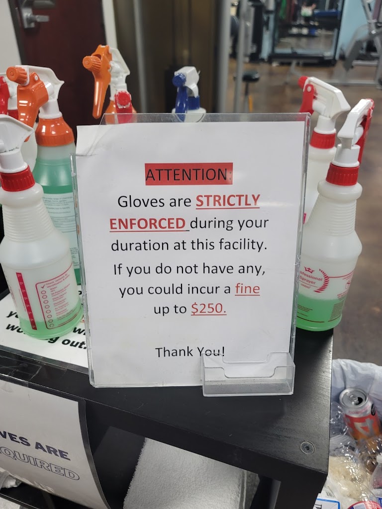 Didn't get to really work out!! they're very strict on the covid rules and I don't blame them, but they want you to wear gloves but don't have any signs about mask. I didn't see the sign about a $250 dollar fine for no gloves till I went back to the front to use the hand sanitizer this was not on their website. I walked all the way from my hotel to work out but I was not prepared and had to leave after seeing the sign due to I clearly didn't what a fine. On the plus side the gym is nice, clean equipment and fairly new so don't turn away due to the safety measures they've put in place to keep people safe but I would suggest to the gym owner to put the glove rule on your website or provide gloves so people like me don't come unprepared I would have called but it was a Sunday night that I had arrived in town.