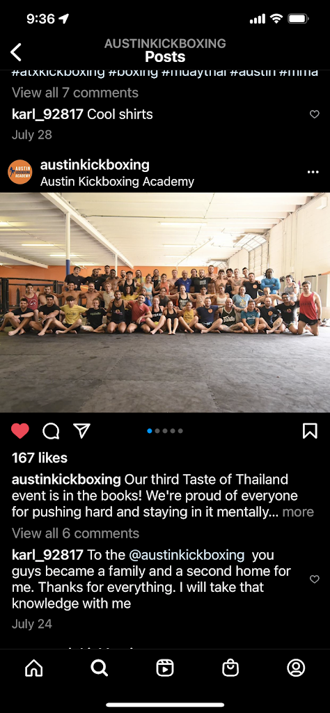 This place is so amazing. Everyone is so professional and the crowd says it all. I love this place . I recommend Austin Kickboxing Academy. I rank them a big 10... Good job Coaches