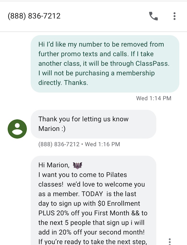 Took an intro class here and they’ve done nothing since but blow up my texts and calls trying to get me to buy their membership that has a minimum 3 month commitment. I’m not a fan of having to deal with waitlists when I can simply go to a different studio the same day I pay for a class, or sign up through ClassPass for cheaper. I told them this and they still continued to send promo texts. Very annoying. Steer clear of them unless you’re fine with that.