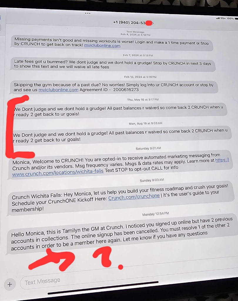I do not recommend crunch. I went to there. I signed up and everything was good and all then I was in the phase of moving to a place that does not have a crunch fitness. I went in and I paid the full amount that they required me to cancel it. This is going on six months after I’m still getting phone calls. My card is still getting debited and I have demanded that they take my information out of the system and they have yet to do so. I have presented them with a letter today that I’m gonna seek an attorney to make this stop, which I don’t understand why it’s still going on. It has harassment that is uncalled for I did my due diligence went in and paid them a lump sum for the months that I signed up for and close my account and yet for some reason, I’m still getting the phone calls. I’m still getting the emails and my bank account is still getting debited. I do not recommend having any type of membership at this place, I gave them a seven day written notice as of today eight – 30– 25 at right about 4:00 PM and I am expecting to hear from somebody by noon on Tuesday