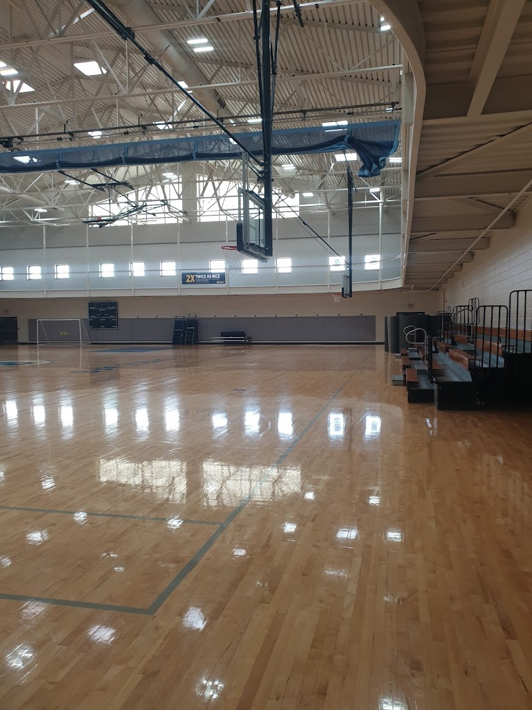 Very nice and decent size gym. It has different rooms. Lots of equipment, and it seems to be expanding. It has a basketball court, racketball court, track and swimming pool. It probably has more.