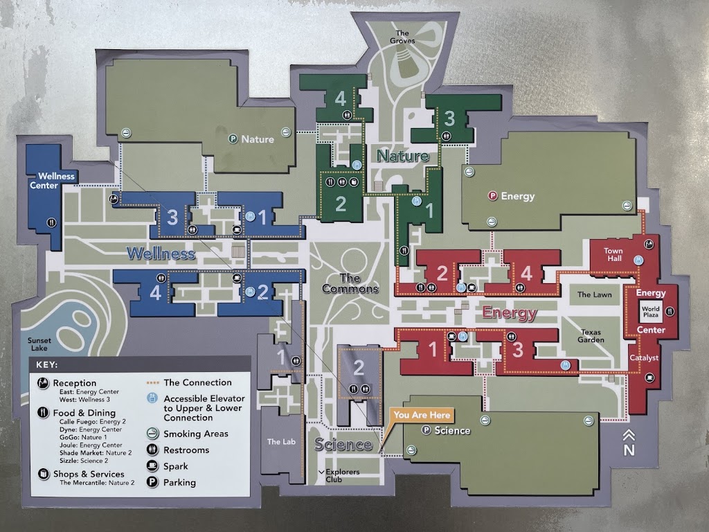 100,000 square foot gym for ExxonMobil employees. The monthly fee is reasonable (less than $40/month) and the equipment is brand new and the space itself is very well maintained. Highly recommend if you like to workout before, after, or even during work. Only problem is that it is closed on the weekends.