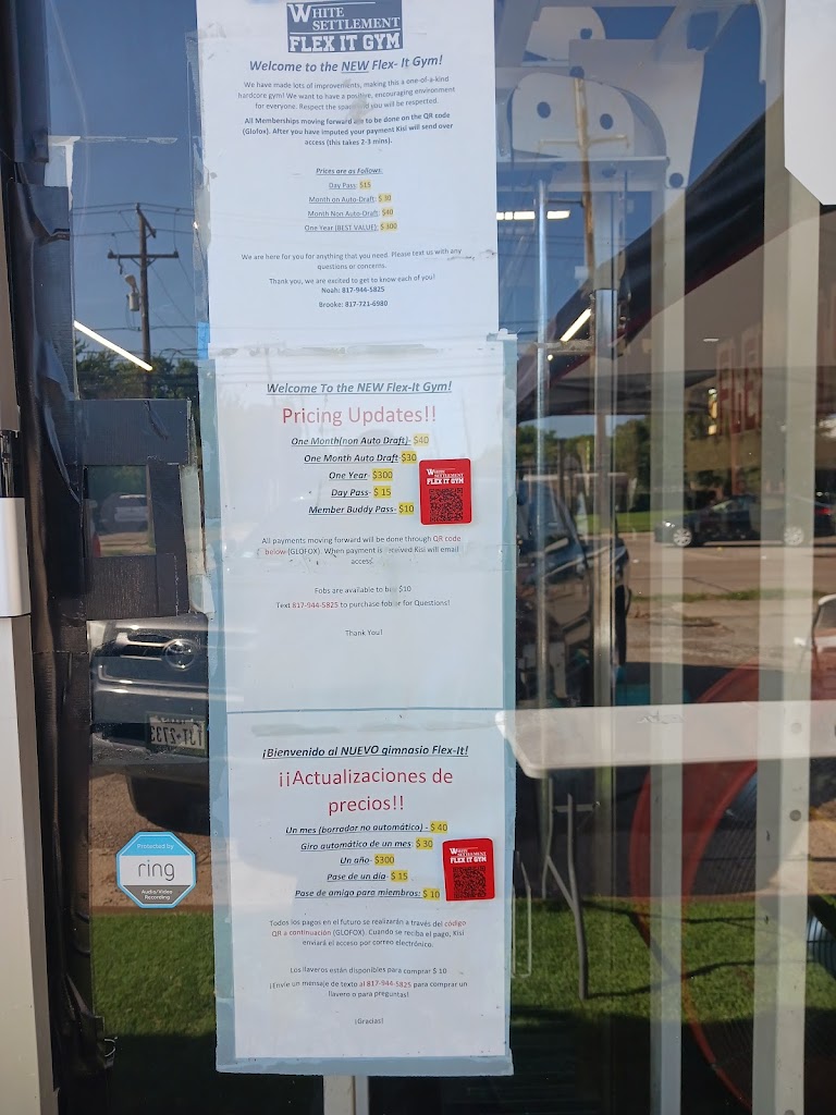 This White Settlement Gym is an absolute godsend. I have been looking for a place to workout close to home that had that old school feel. I was not looking for a boutique gym full of people that are already Fit. I was looking for that old-school grind, a place to throw weight, a place to better myself and achieve my fitness goals. Flex-It Gym Is definitely my new favorite Gym. They have free weights, isolation equipment, cross fit, and all the cardio equipment you need.The owner Joe offers training so you can keep advancing and smashing through your personal goals. His knowledge is endless. The personal attention you get from him, and his staff deserves much more than just five stars. They offer a 12 month discount, corporate discounts, as well as a family plan. I canβt recommend the Flex It Gym enough. Best Fort Worth Gym by far! Joe thank you and you team for providing White Settlement the business it desperately needed:)