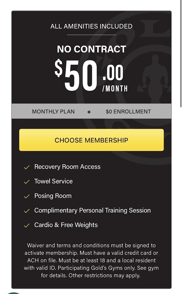 Regular membership not accepted because this is a “Level 3” Golds Gym. You either have to commit to upping your monthly pay to $44.99 AND repay the annual fees, or pay for a $25 day pass. The gym is nice, but everything looks extremely packed so not really worth the price. Stick to surrounding Golds Gyms.