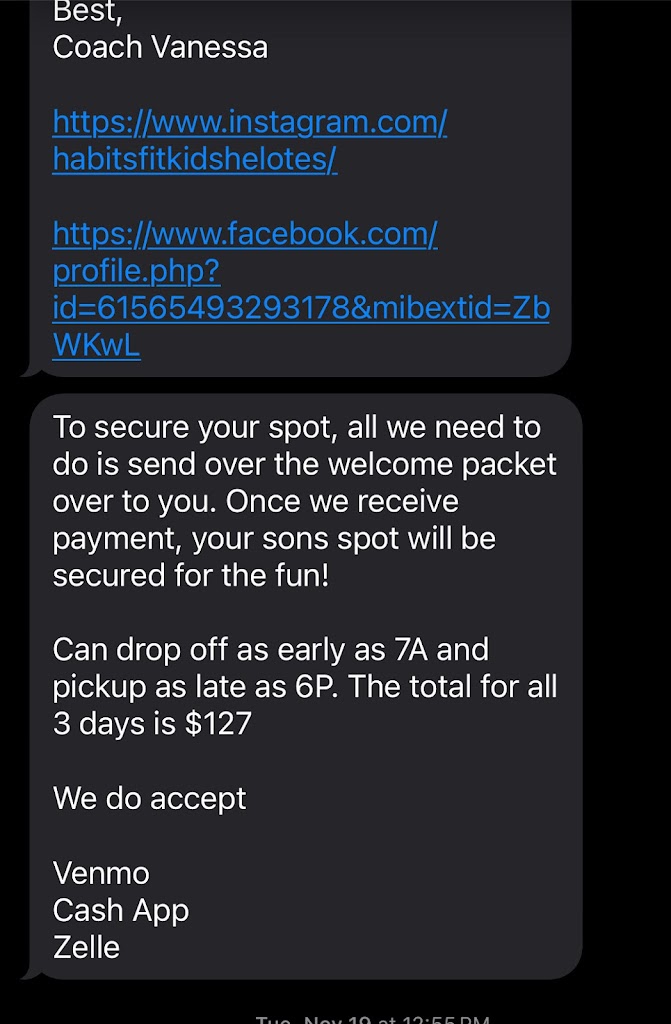 Habits Fitness is a 10/10 in my book. The owners Coach Vanessa and Coach Mac along with their daughters are PHENOMENAL. My son Dj went here for summer camp for the first time this past summer and he loved it. He met awesome coaches along with great friends. We plan to attend again for the many more summers to come. The weeks were filled with lots of adventures and fitness. I def recommend them and thank you Habits Fitness for a great 2025 summer!