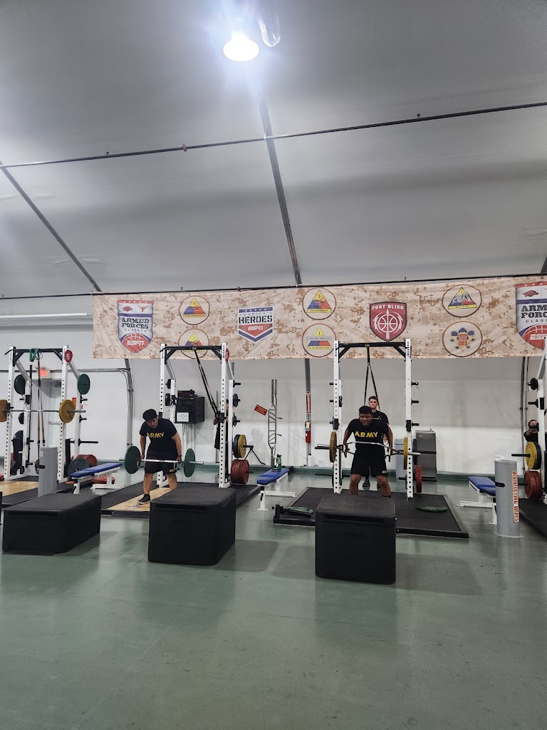 Plenty of squat racks and Olympic weightlifting platforms. Just received new Sampson oly bars that have some decent whip. Dumbbells only go up to 125lbs, 1 concept 2 row machine and plenty of accessories to hit every body group. Just make sure to go after 0730 due to unit pt.