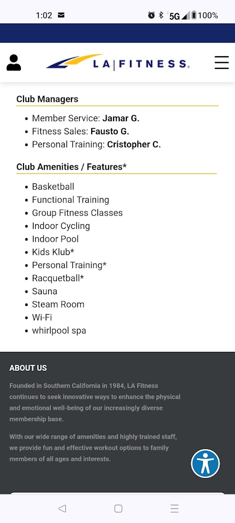 Highly annoyed that this location closes the basketball court at 8pm. The main reason that I pay more for LA Fitness id because of the basketball court. The members also like to trash the place, and there’s usually no cleaning staff. This is the worst LA Fitness location in the area, and I only go because it’s the closest.