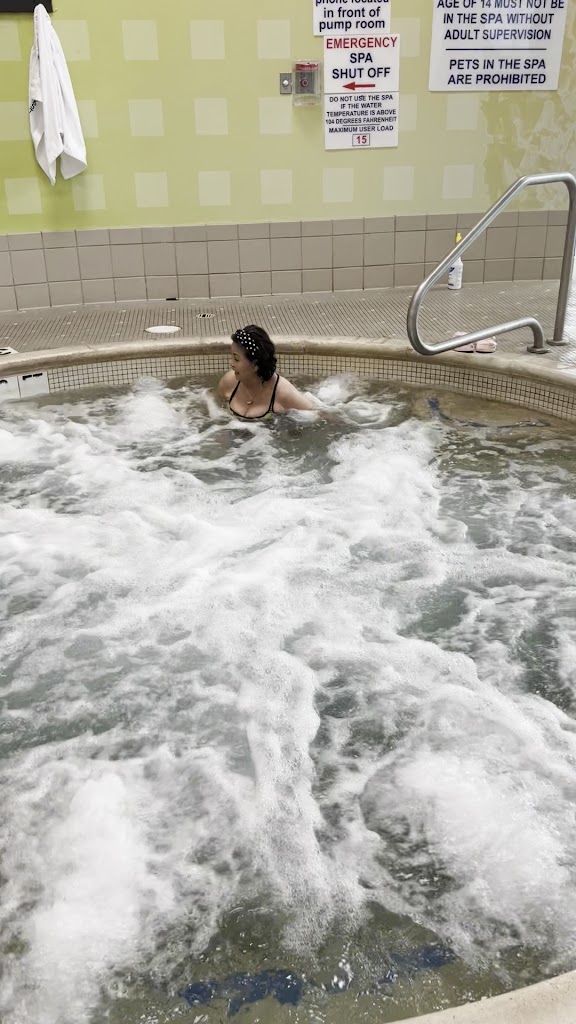 The hot tube is not so hot, it says 100 feels a little cooler. If you need jets to get a massage don't bother here. Jets don't work, it just has bubbles. What a joke for a hot tube. When the fix it, just maybe they could give it a good cleaning.