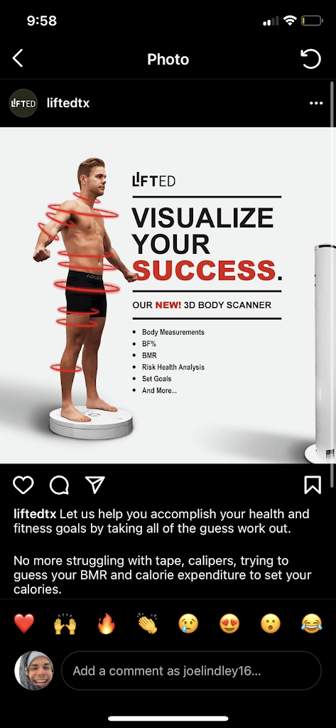 The LIFTED experience is one of a kind. Trainers are motivating, friendly, and knowledgable on how to help clients achieve their fitness goals. It's truly been a life changing experience and I'm so happy to have joined this family.