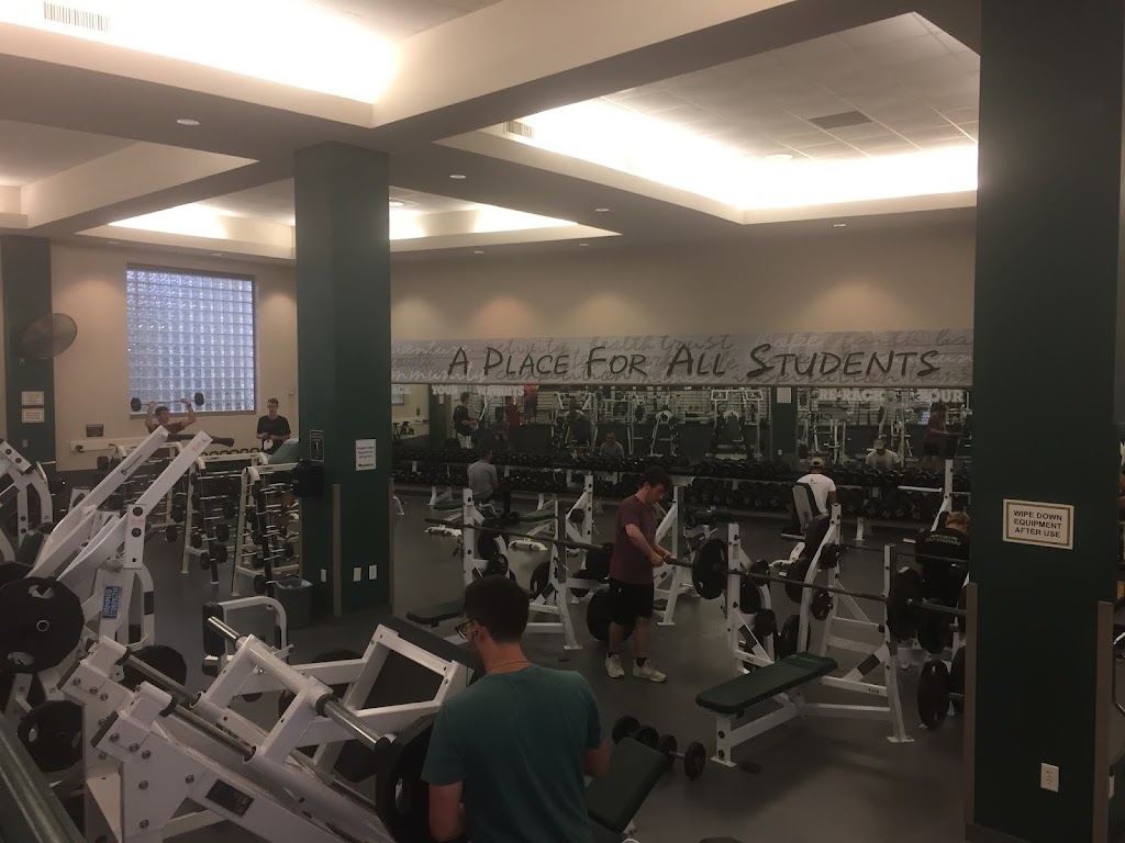 The main workout area is divided into three spaces: one has free weights, one has weight machines, and one has cardio machines. Clean space with most of the necessary equipment for various types of workouts. However, it is smaller than I would expect for a university of this size. It can get pretty crowded at times.