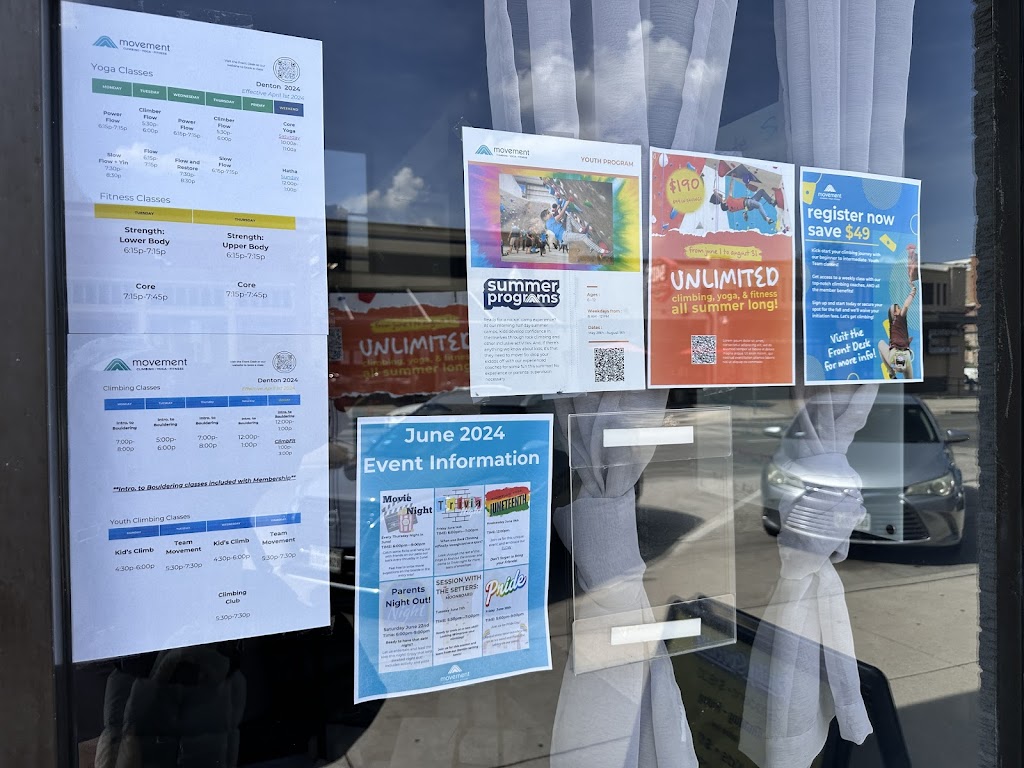 Movement is an indoor rock climbing gym and fitness center on West Oak Street in Denton.