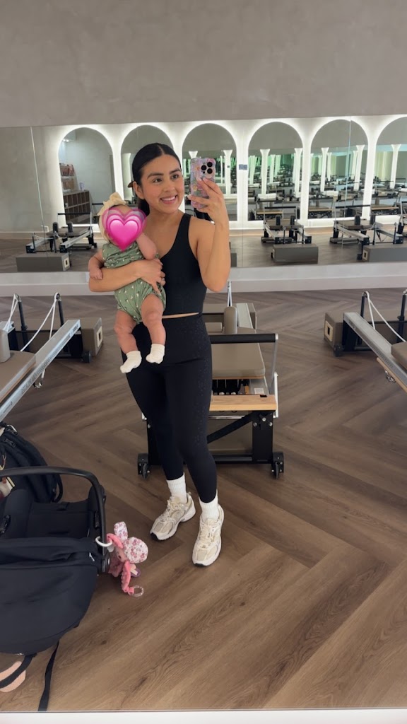 Had my very first mommy and me Pilates class today and let me just say, I truly enjoyed it. Such a beautiful studio and the owner is so so sweet. I can’t wait to be back. 🫶🏼