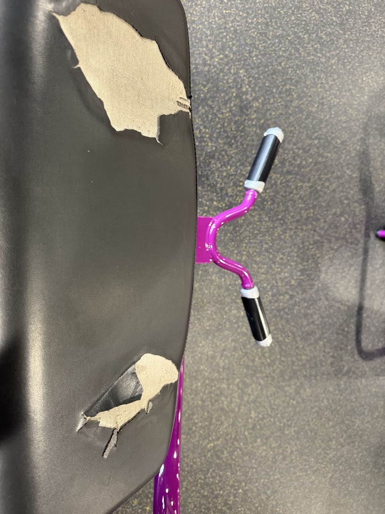 Unacceptable… machine padding worn all the way down allowing for sweat and any other liquids to penetrate into the padding and underneath . Breeding ground for infection and something serious to occur…FIXI IT