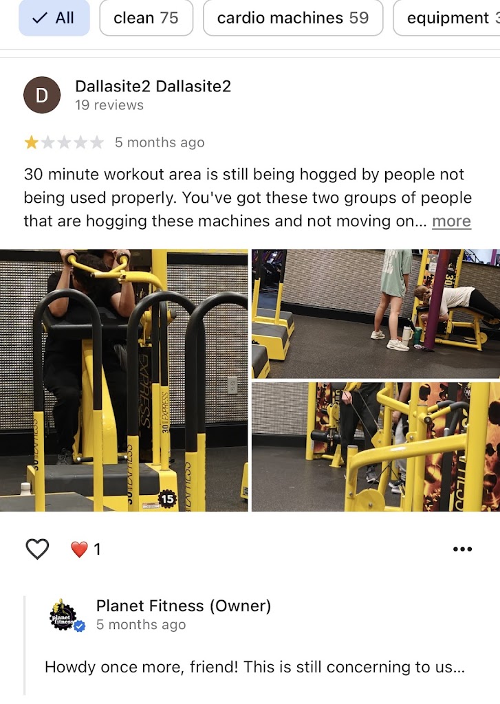 This isn’t just a minor inconvenience — it directly impacts the cleanliness of the facility. Members are left walking from station to station trying to find supplies, often frustrated, while equipment sits uncleaned. I’ve personally witnessed multiple people leaving annoyed because of this ongoing problem.