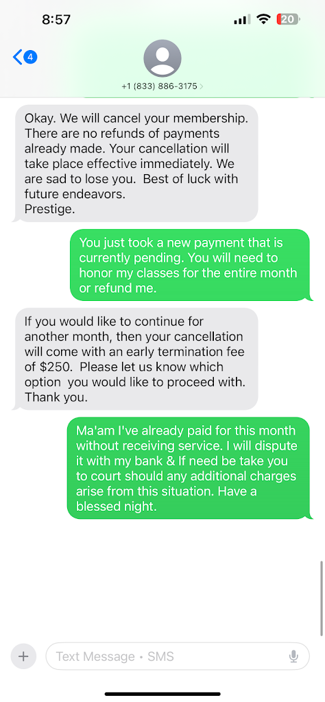 Let me start by saying I am someone that shows up on time, cancels if I can’t attend & freely lets payments auto deduct so the merchant is paid in a timely manner. I oblige by the agreement I signed. Well the owner decided to increase fees one month into my agreement which specifies the rate I pay. I did not agree to the increase so she decided she would keep last payment & not provide service. I will let you see for yourself the lack of morals from this business. Obnoxiously ignorant should be the business name.