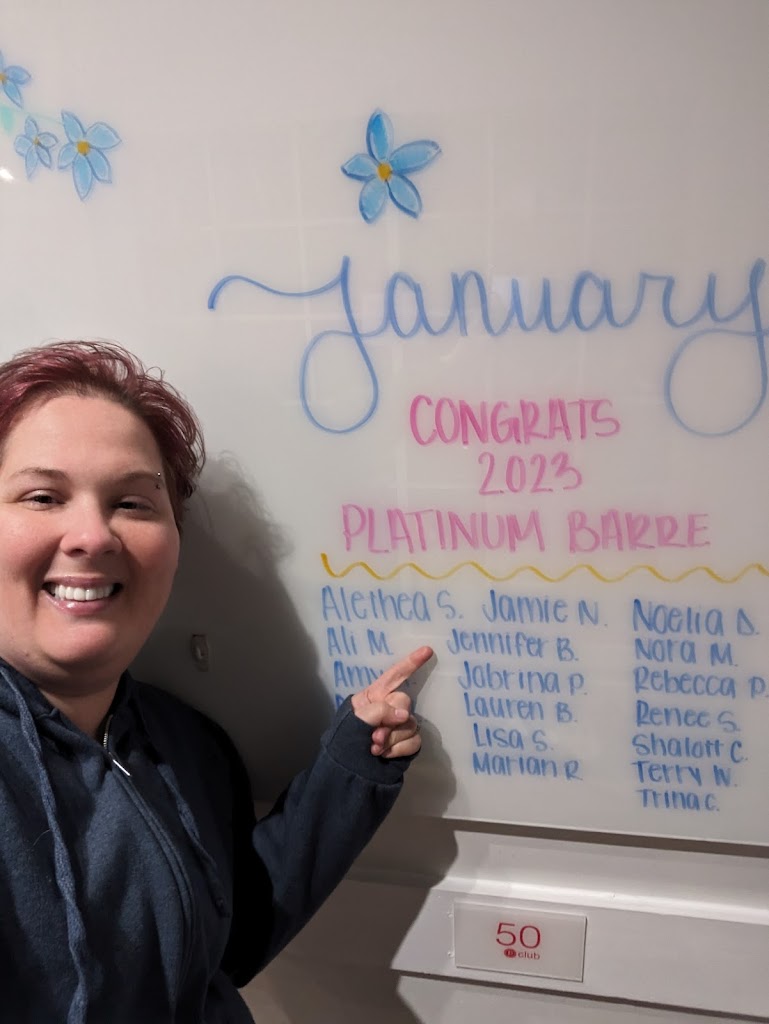 I’ve been doing Barre for about a year and my husband managed to join me a few times this year and understands why I love it so much. Barre has helped me both physically and mentally which are 2 things that are especially important to me as I approach my 40’s. All of the instructors are knowledgeable, helpful, and friendly. Excited to hit new milestones in 2024!