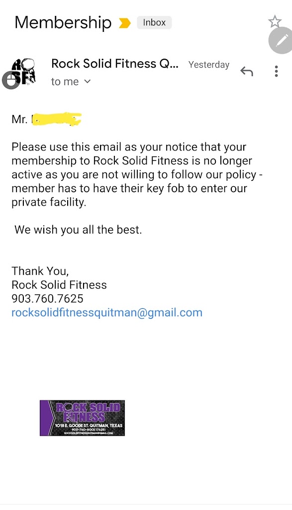 I left the gym, posted a bad review and then got a cancelation notice for "not following policies".