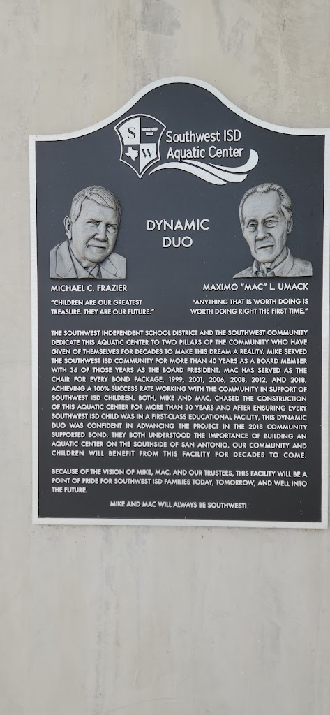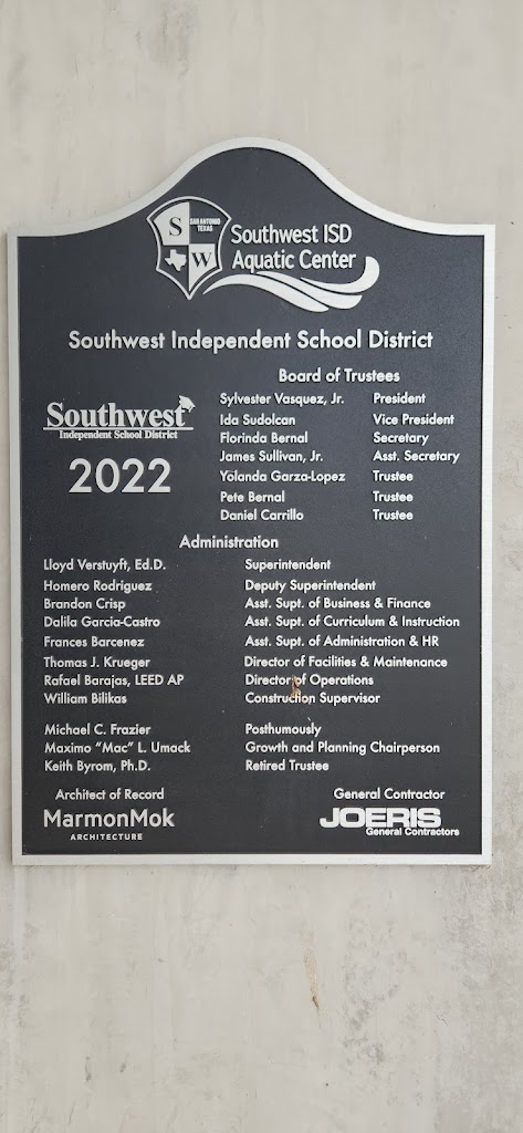 The Southwest ISD Aquatic Center is an athletic training facility for swimming, diving, and water polo. This facility hosts club and high school competitions. In addition, the SWISD Aquatic Center also offers a water safety/learn-to-swim program to elementary aged students enrolled within Southwest ISD.