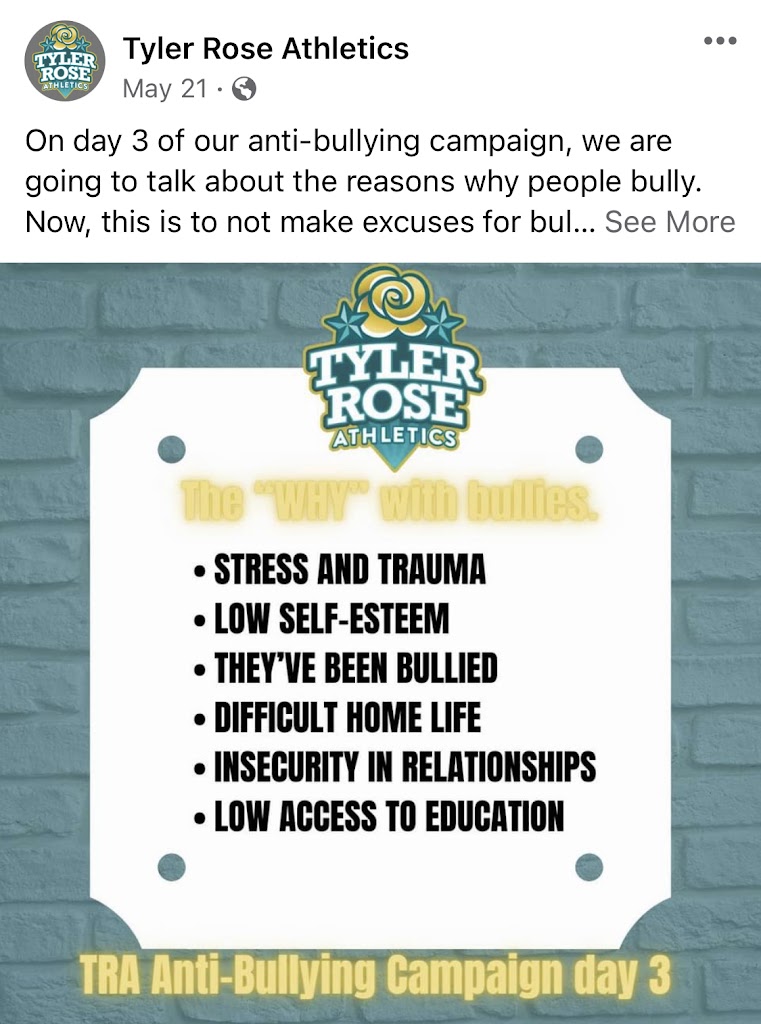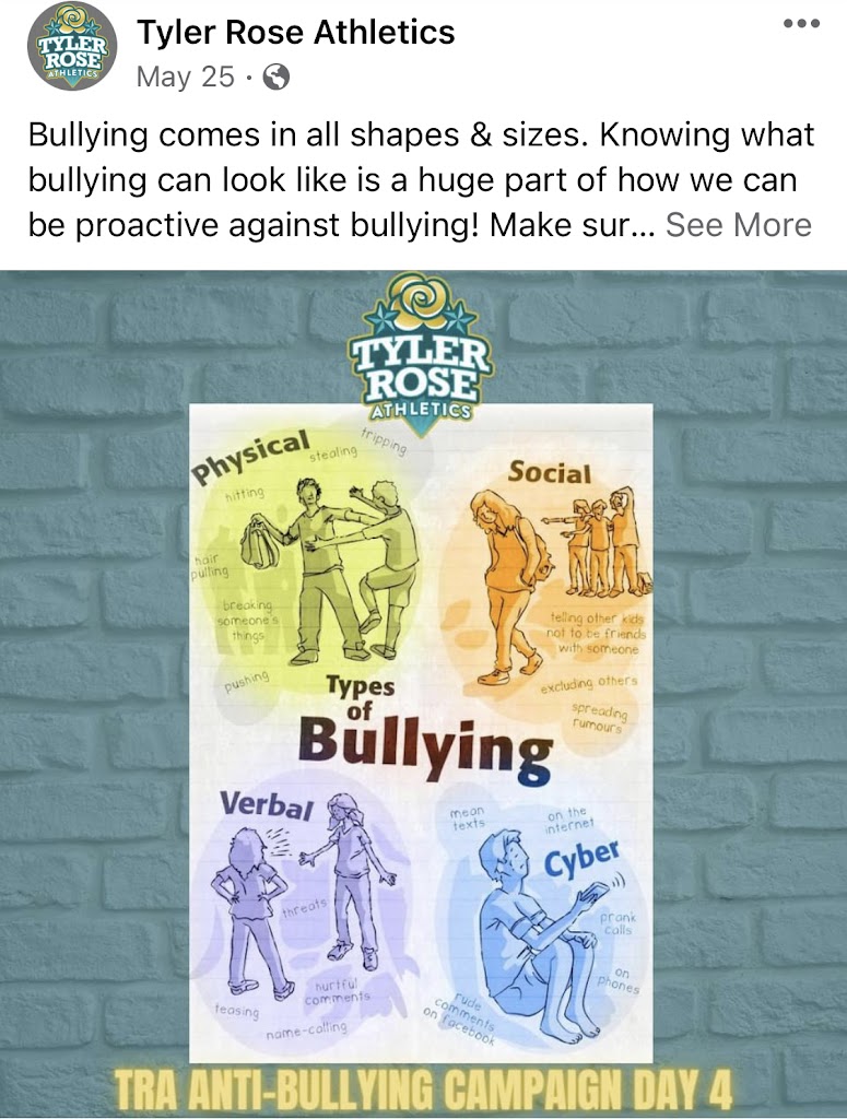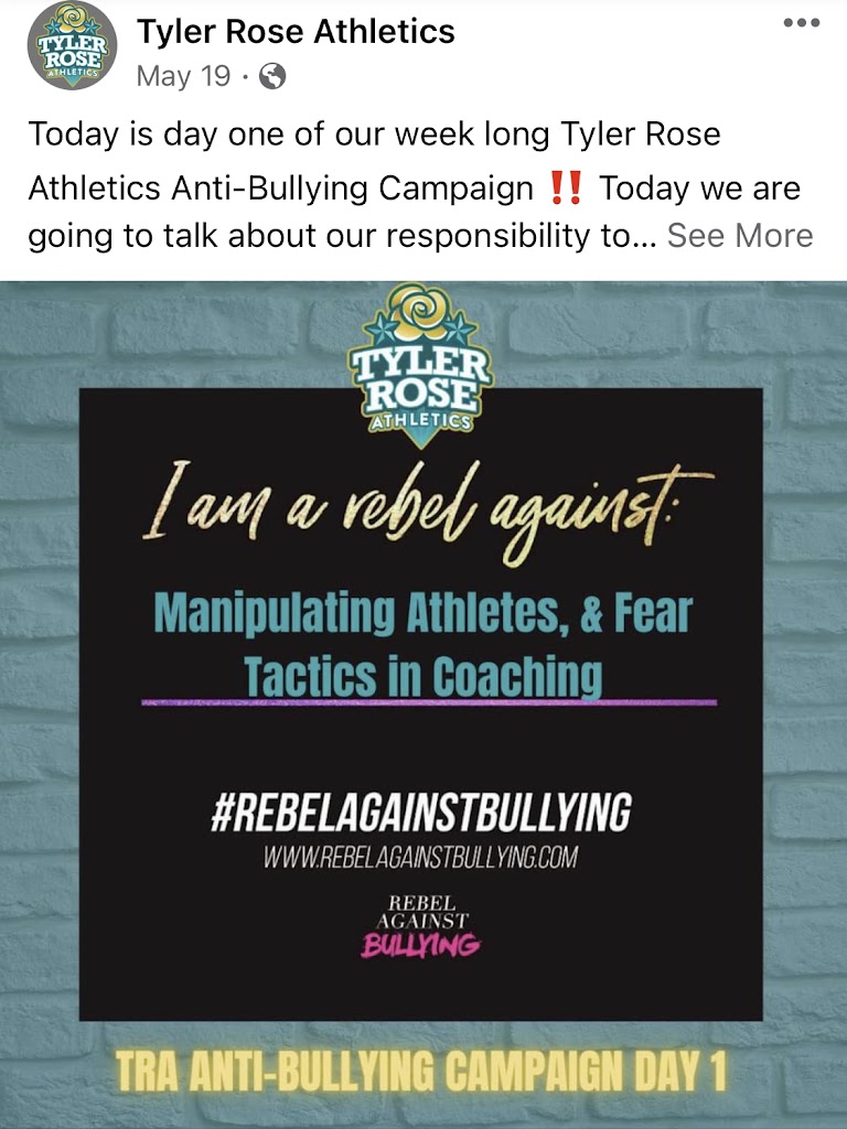 Great staff that works hard and puts the kids well-being above all else! Technique and correct form are placed on high priority when instructing tumbling, cheerleading and stunting. Not only does this business demand the best from their coaches, they also require athletes to be held to a standard of great work ethics and kindness towards each other. Furthermore, Tyler Rose Athletics takes matters of bullying and harassment very seriously. In fact, they held an entire week of an anti-bullying campaign where they confronted many of the social stigmas that take place in the cheerleading community.
