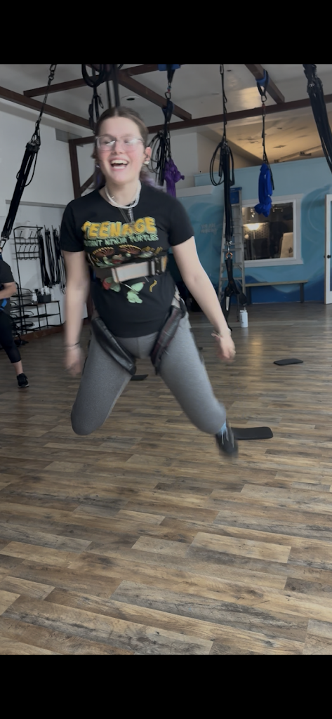 Had so much fun this morning! Said YES to bungee fitness for Self Care Saturday. My 15 yr old barely likes me but she loved Tiffany this morning!