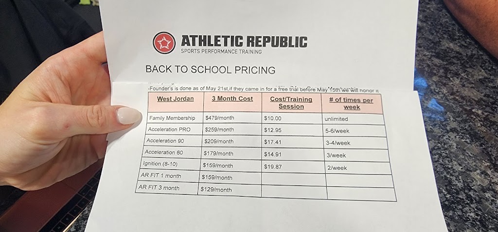 Our daughter, who trains as a Goalkeeper in soccer, has been going to Athletic Republic West Jordan for two months now - she absolutely loves it. Amazing workouts and knowledgeable trainers.