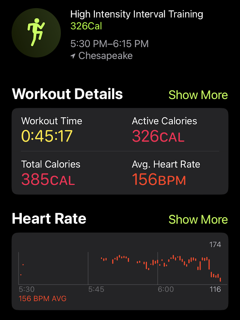 Burn Boot Camp Chesapeake has truly changed my life. The protocols vary day to day and it has kept my workout interesting and fun, which has helped to remain consistent. I've lost over 40lbs on my health journey in 2024 and I'm looking forward to seeing what another year at Burn can do to achieve my goals of a healthier lifestyle. The trainers are great at reading the room, and know when to push you during camp to help you challenge yourself. The gym is clean and organized and the staff are very welcoming. If you're looking to join a gym, I highly recommend.