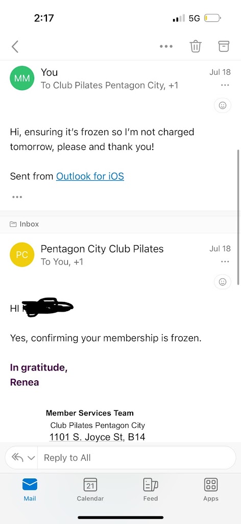 Club Pilates Pentagon City is amazing! Each class I attend I leave feeling stronger. Since beginning, my mobility has greatly improved. Club Manager Marley is always very welcoming and does a wonderful job at making the studio have a community feel. All of the instructors are fabulous. Instructor Maesy is awesome! Her classes are challenging and fun. I always leave her classes with a good sweat, a big smile, and a good laugh. Thank you Club Pilates Pentagon City!