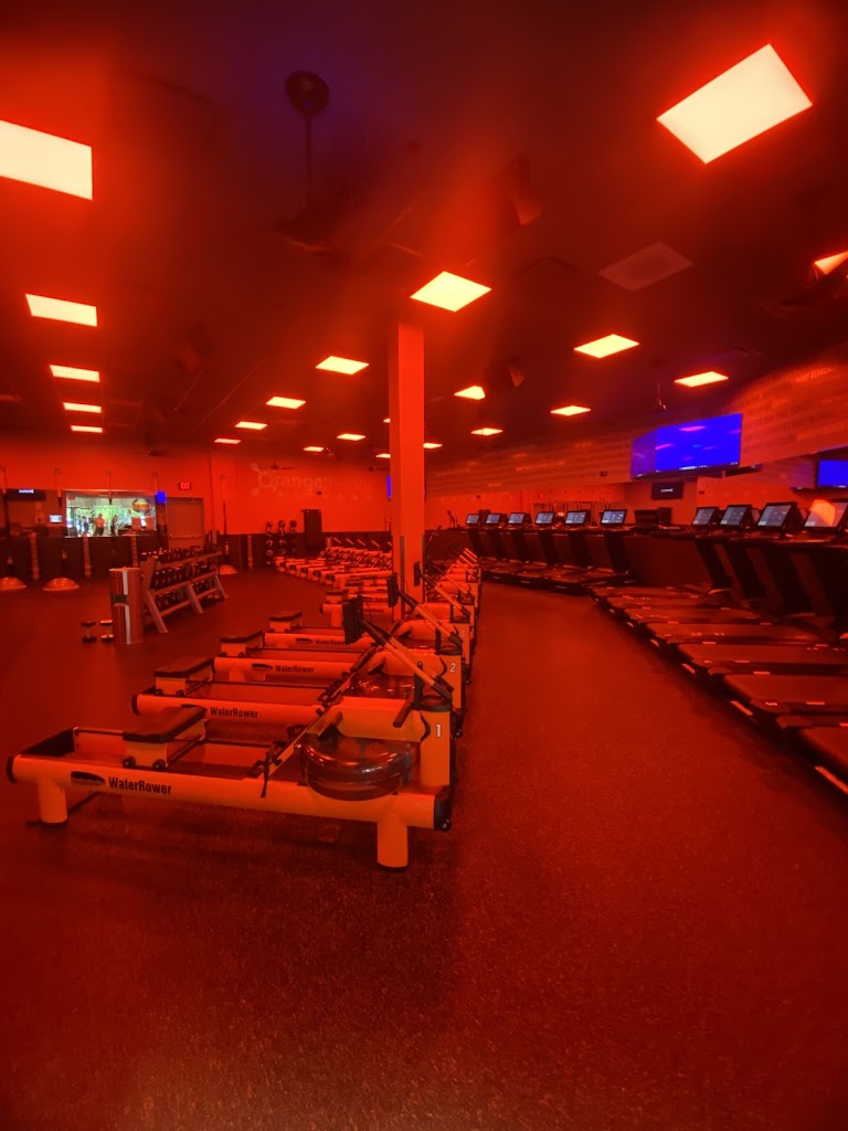 This gym is clean and simple. There is a muted orange lighting in a dark room with loud music, so you aren't really focused on other people, just on yourself. You can buy a $120 proprietary "Orange theory Burn band" that syncs to the Orange Theory app and the live screens during the class so you can track your heart rate through 5 different stages. (My high blood pressure meds won't let my heart rate get too high but I can definitely tell I am working - sweating and slightly out of breath!)