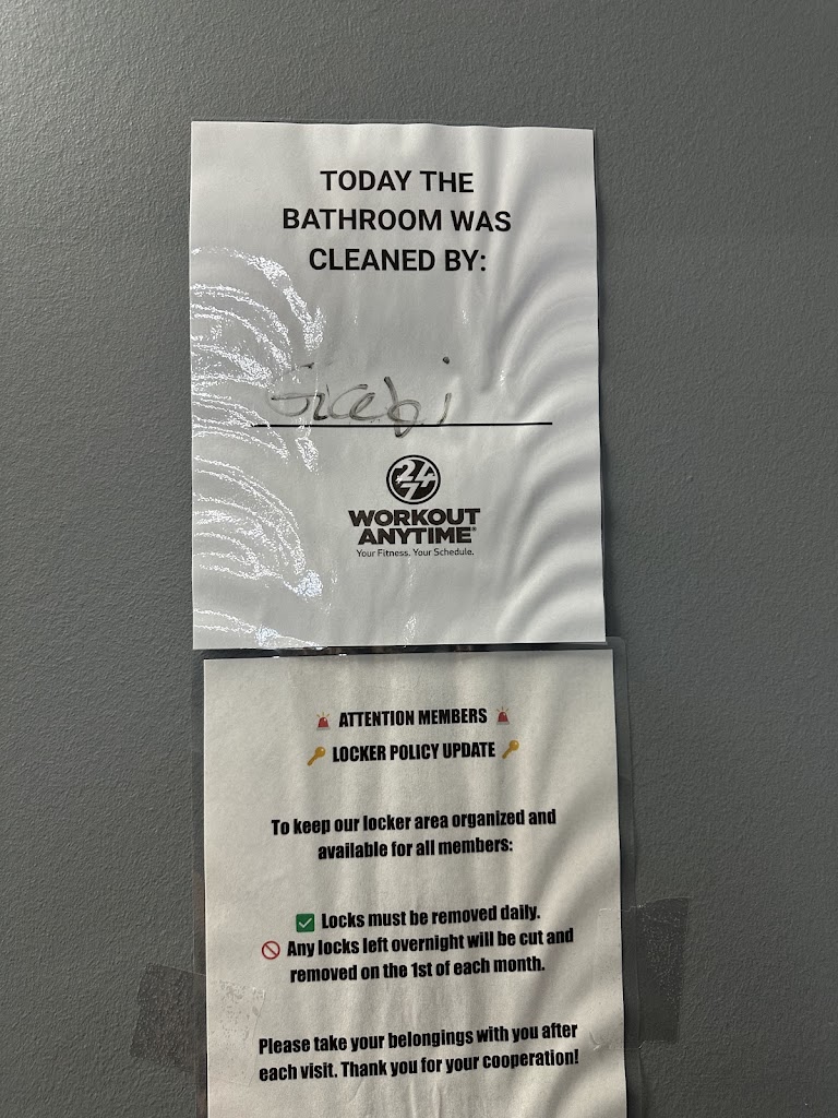 Unlike Planet Fitness and Valley Fitness, the showers at Workout Anytime are not being cleaned even once a day. The photos I’ve attached show the same pile of bar soap that has been sitting in the showers for over a week. The second photo shows a broken soap dispenser, which has been in this condition for months. This is something that should realistically be repaired within 3 days to a week—if not the same day. Instead, desk tape has been used multiple times as a temporary “fix.”