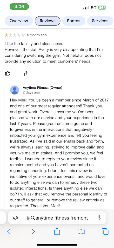 I see now Im not the only one with a complaint that you choose to out on these reviews, and if they use a name that is not in your system you claim they must be reviewing the wrong gym.