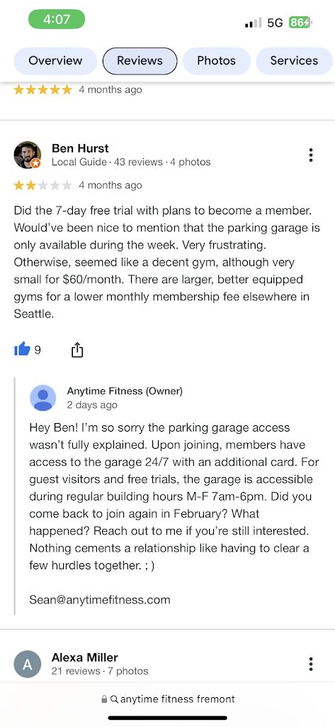 My first review was a one star, but the owner put in a lot of effort to make things right. While, I still have some problems with Anytime fitness as a franchise, and often have sub optimal experiences at other locations, Sean is really putting in the work to make everybody feel welcome, heard, and healthy.