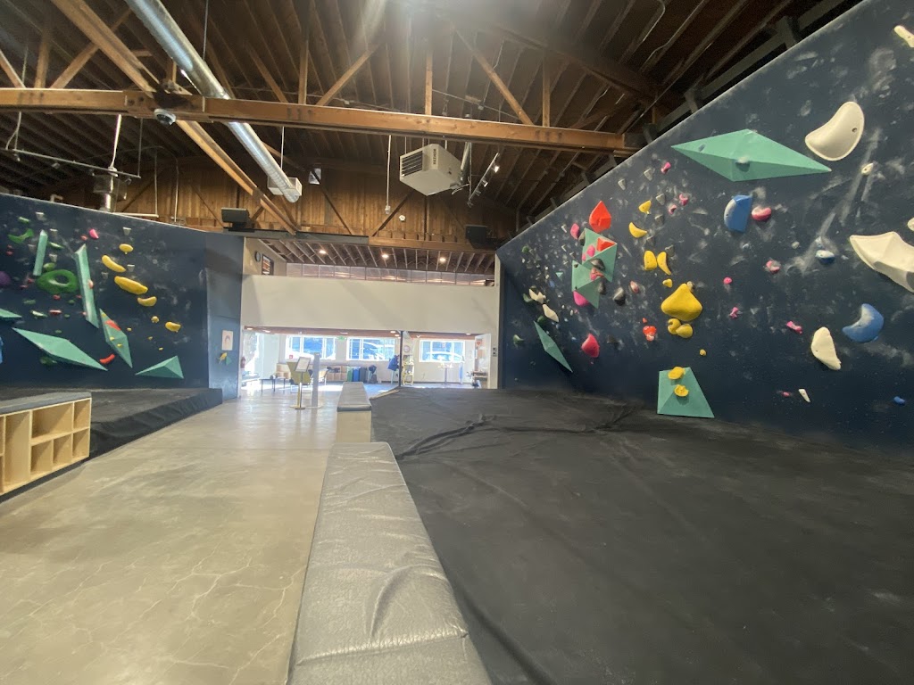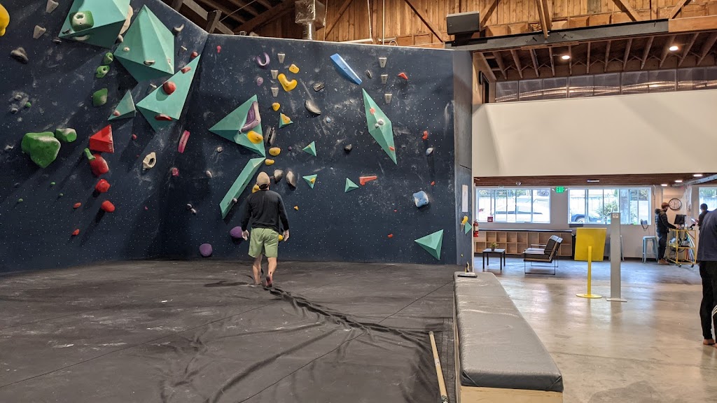 Upper Walls has a different layout than the other Seattle Bouldering Project gyms. This facility is located a walk up the road from Fremont and only offers bouldering. There are no workout areas or boards. However, the arrangement here has seating in the center of the room and is great for resting. Would recommend going to Poplar or Fremont but if those gyms are busy than give this one a climb!
