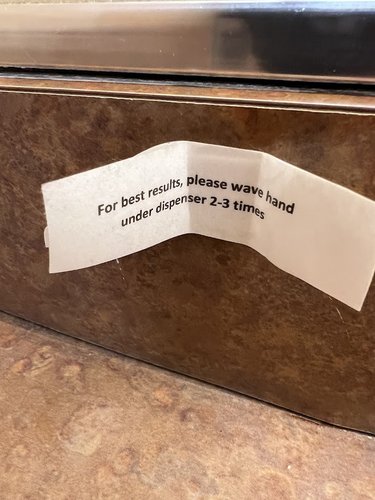 Also, management needs to fix the damn soap dispensers. It’s embarrassing. Every single bathroom has dumb soap dispensers that you have to wave your hand under to get a microscopic amount of foamy soap.