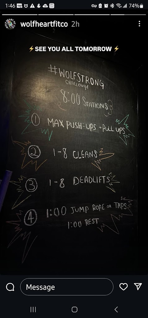 I don't know why I haven't left a review sooner? I guess because there are too many positive things I can say about Wolf Heart Fit Co. to leave in a review. Wolf Heart Fit Co. has made me feel welcome since the first time I attended a class. I knew nothing about fitness, and I am still learning every day. The coaches, and other members, metaphorically hold my hand and have been guiding me every day. This journey is tough and mentally exhausting but everyone has each other's backs here. I feel allowed to be here and I have never felt that way in any other fitness setting. Thank you Alexis for creating such a welcoming and safe space. You rock. ✨️