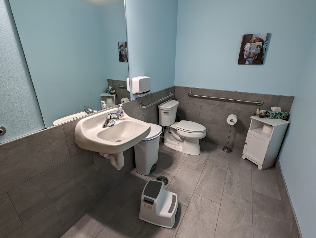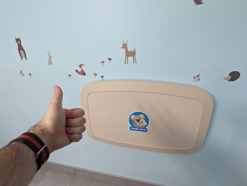 Multiple family bathrooms that are clean and include kid seat inserts on the toilets, step stools, changing stations!