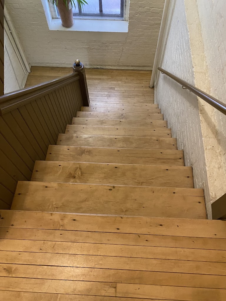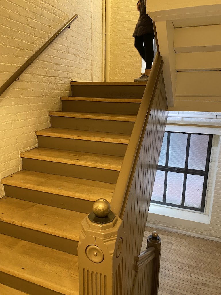 When you walk into the door from the street you need to walk down a hallway and up some flights of stairs to reach the studio (follow the signs). It seems like there must be an elevator available if needed, but I didn’t see it. The metalwork sculptures in the building are very cool to look at as well. Overall great experience!